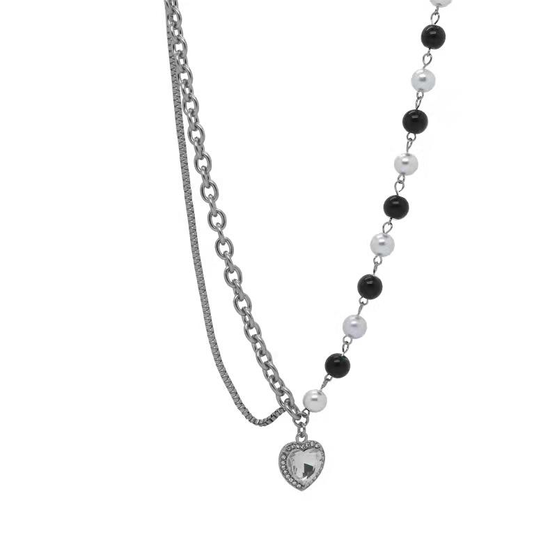 Ожерелье из двух частей любви с черным и белым жемчугом, женский дизайн Tide Niche, милая и классная цепочка на ключицу, аксессуары для цепочек свитеров