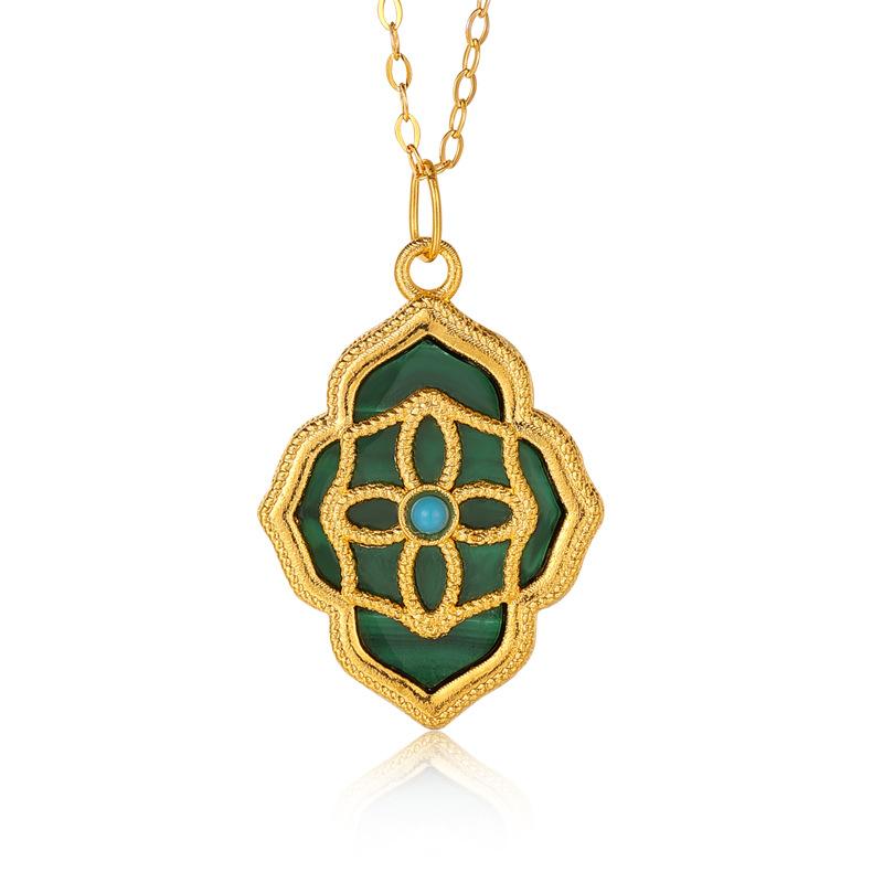Ожерелье из желтого золота 18 карат, малахитовая геометрическая цепочка Ruyi, винтажная женская ключичная цепочка, оригинальная продукция