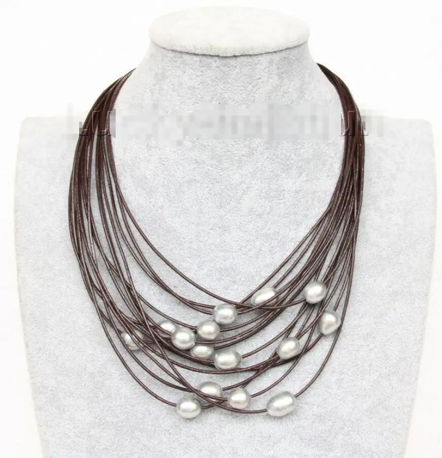 Ожерелье из искусственной кожи, цвет под жемчуг, Красный, 17-24 дюйма, 10-12 мм, 15 рядов
