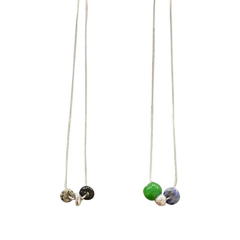 Ожерелье из красочных камней и серебряных бусин, простые украшения для шеи из бисера, элегантные 28TF
