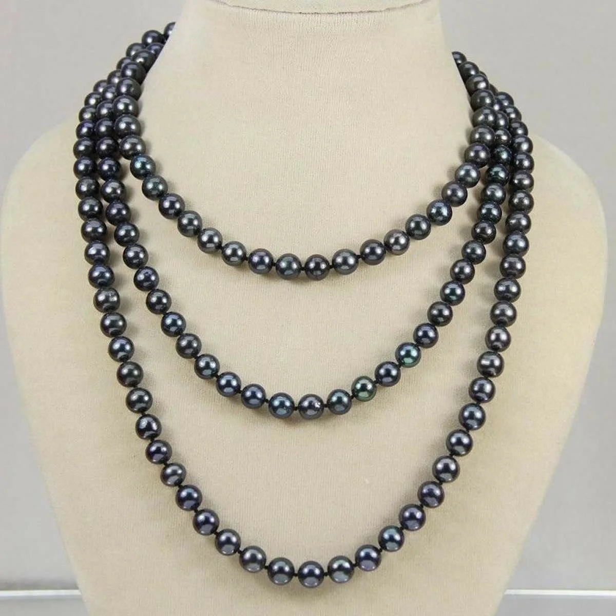 Ожерелье из натурального пресноводного культивированного жемчуга, длина 50 дюймов, черный таитянь, 7-8 мм