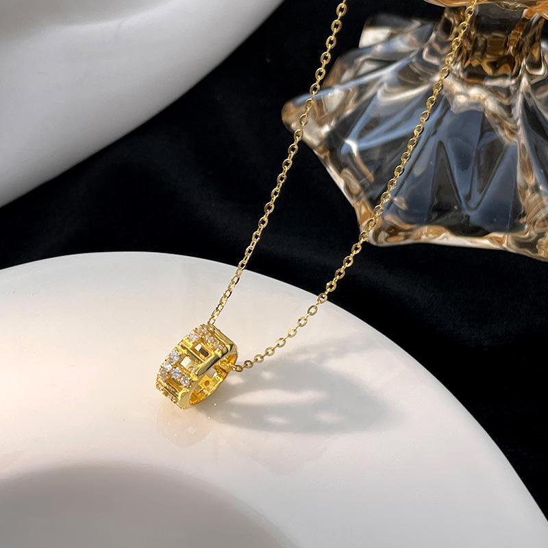 Ожерелье из полого круга из серебра 925 пробы Banyan Tree: Ретро-стиль в японском и корейском стиле, легкая роскошь, тонкая цепочка на талию и ключицу. NS991, 925 Silver, gold plating золотой
