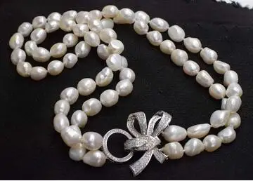 Ожерелье из пресноводного жемчуга, белый нестандартный барокко, 2 ряда, 10-11 мм, 22-24 дюйма, оптовая продажа