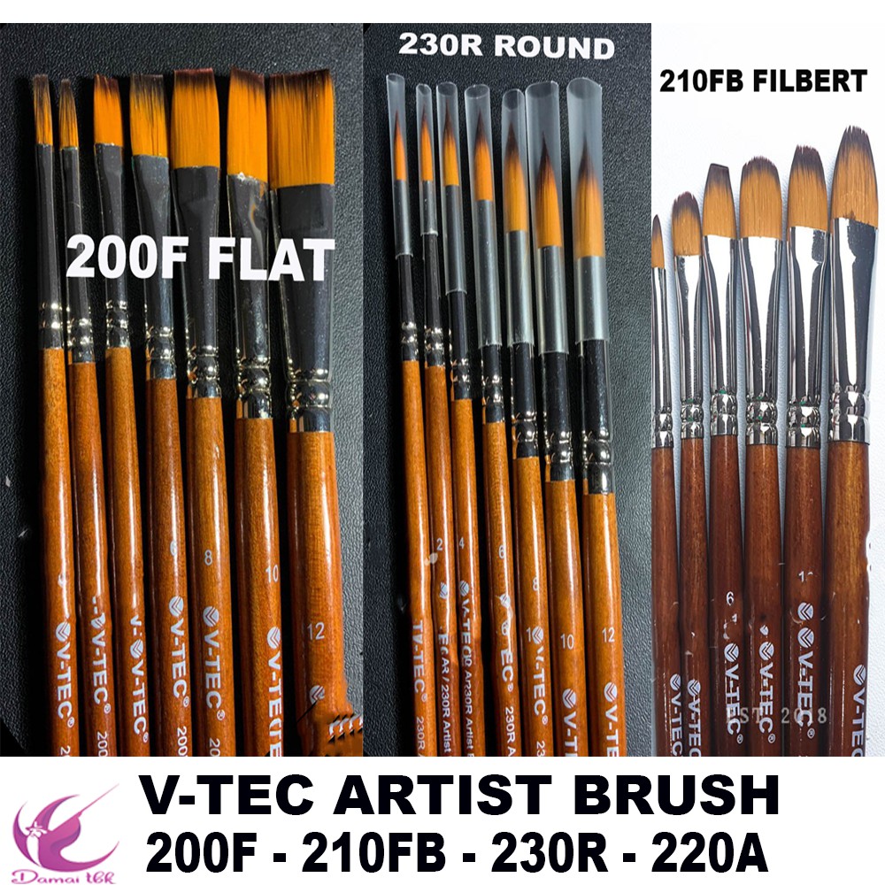 Kuas V-Tec Brush Flat, Round, Angle, Filbert 200F, 230R 220A, 210FB no,0,2,,4,6,8,10,12,14,16,20,22