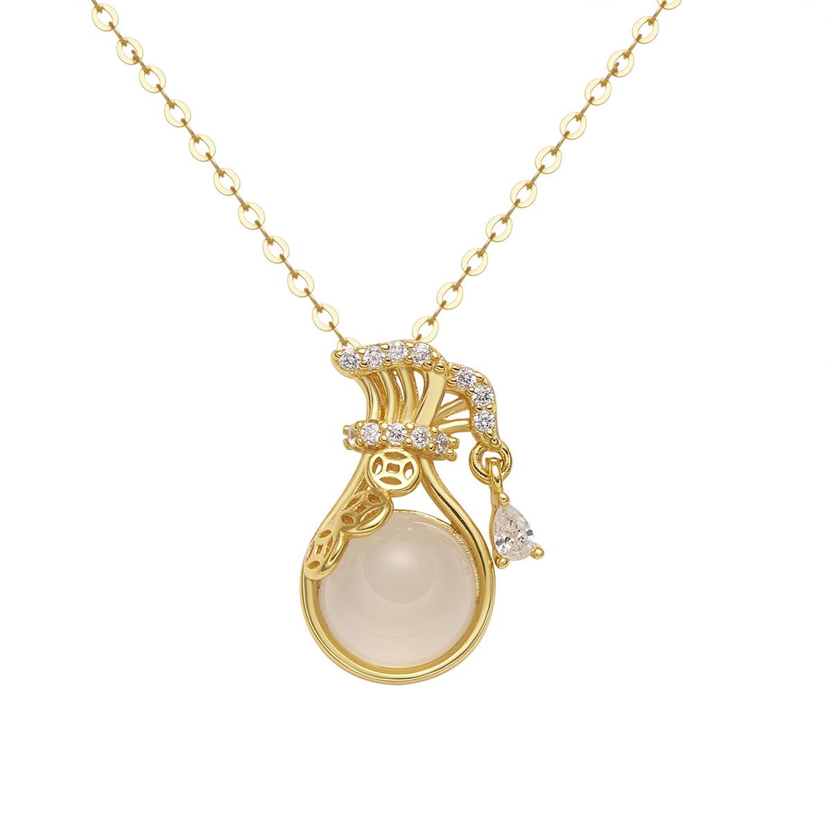 Ожерелье из серебра S925 «Мешочек удачи» Женское легкое роскошное антикварное подвеска в виде мешочка с деньгами 2025 новая цепочка для ключиц Премиальный праздничный подарок 925 silver