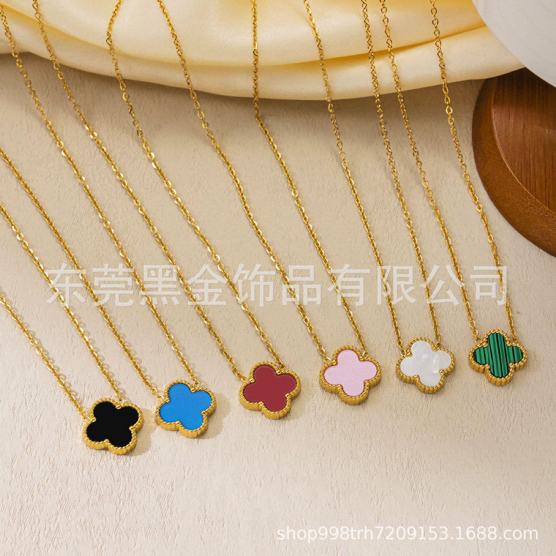Ожерелье из четырехлистного клевера 13 мм, ожерелье из одного цветка четырехлистного клевера, титановая сталь 18 карат, двусторонняя цепочка-ракушка на ключицу 18K