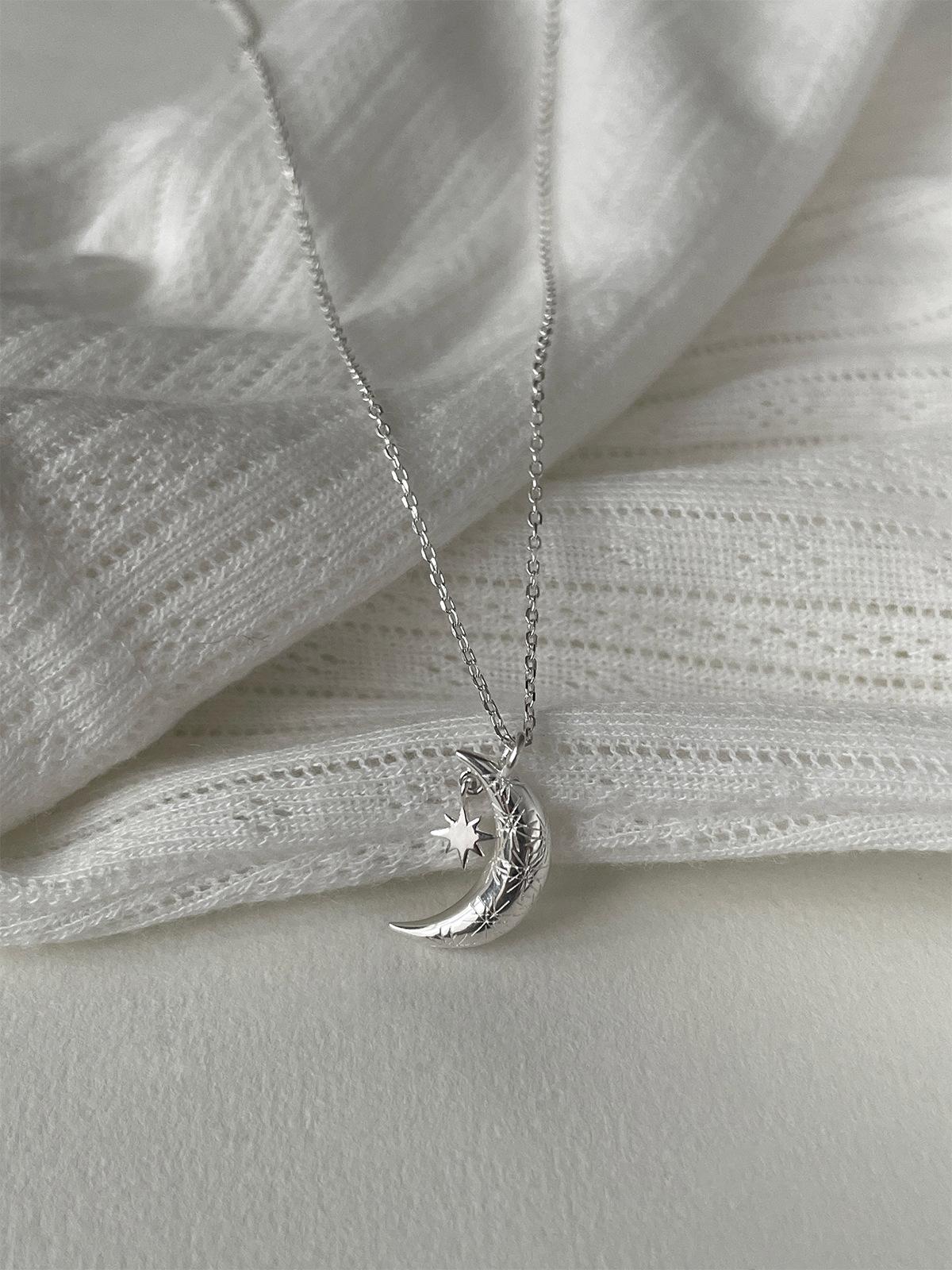Ожерелье с восьмиконечной звездой из стерлингового серебра 925 пробы, женская легкая, роскошная, изысканная, холодная, с полумесяцем, ключичная цепочка, универсальная, осенняя, новая, цепочка на шею 925 silver
