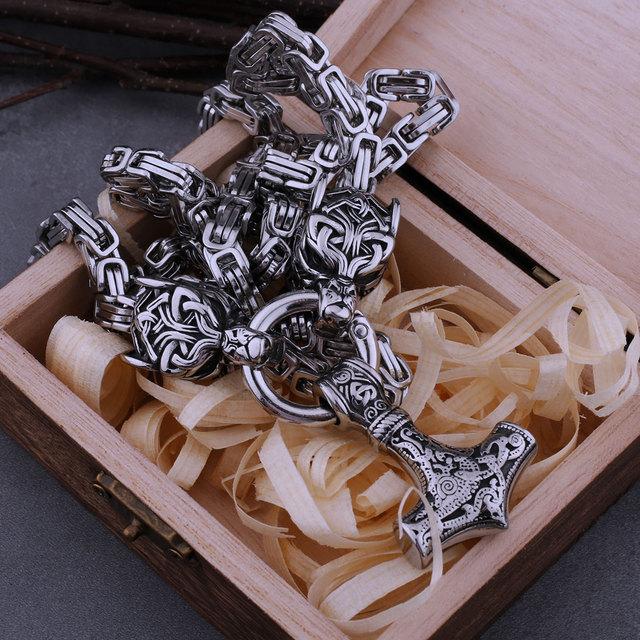 Ожерелье с головой волка из нержавеющей стали, молоток Тора, мужское ожерелье в стиле панк, хип-хоп, толстая цепочка, скандинавский амулет, руна для парня