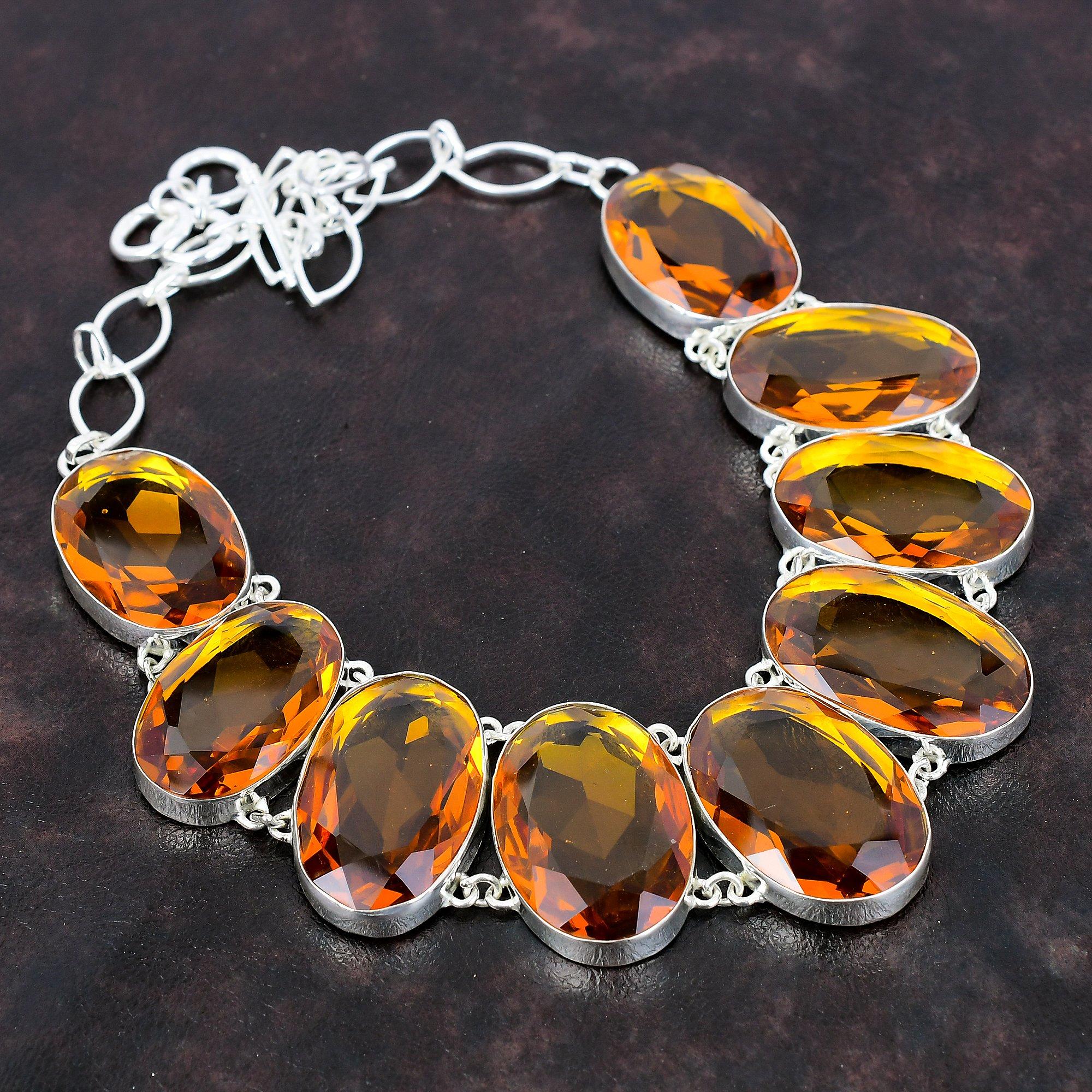 Ожерелье с граненым цитрином, ожерелье из драгоценных камней, ювелирные изделия ручной работы, ожерелье из стерлингового серебра 925 пробы, регулируемое ожерелье-цепочка, изящное ожерелье для подарка Adjustable