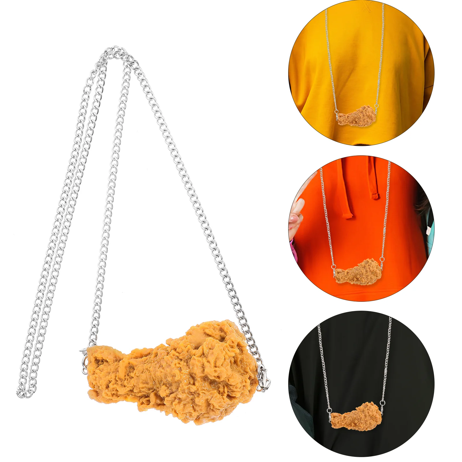 Ожерелье с искусственной едой, декоративное ожерелье с кулоном еды, аксессуар для одежды (куриная ножка)