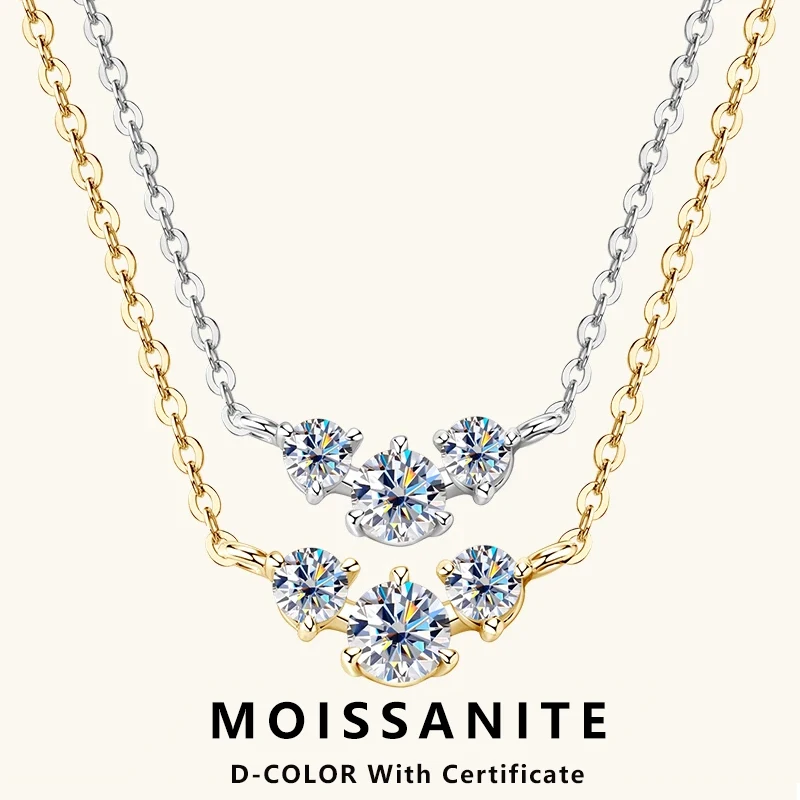 Lnngy 3mm 4mm Moissanite Necklace Collares Mujer 925 Sterling Silver Three Stone Pendant Necklaces For Women Chains Jewelry Gift