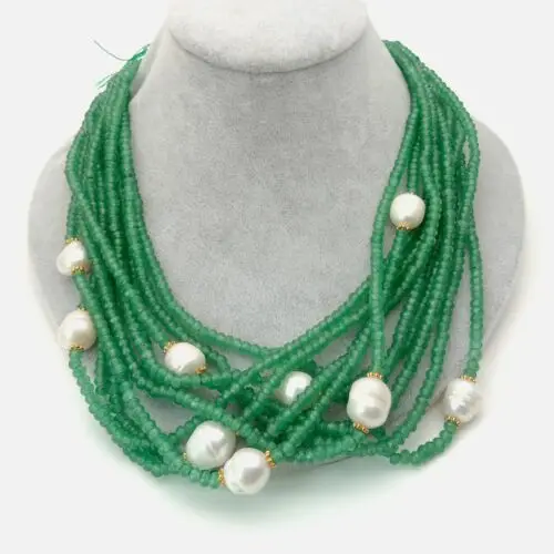Ожерелье с ограненным зеленым нефритом и белым пресноводным жемчугом, 20 дюймов, 10 нитей, 2x4 мм