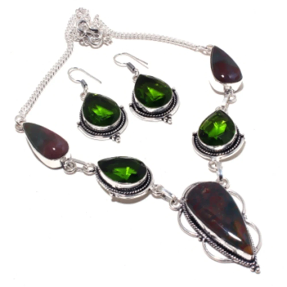 Ожерелье с перитовыми камнями и серебряными вставками из меди, 50,3 см, N3939