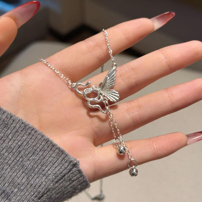 Ожерелье с подвеской «Змея и бабочка» — женская цепочка на ключицу и свитер