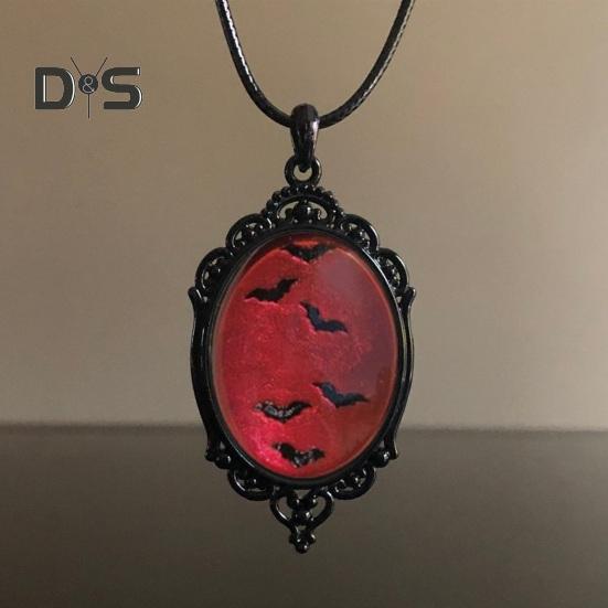 Ожерелье с подвеской в виде летучей мыши, женское готическое колье, овальная подвеска с узором летучей мыши, винтажное ювелирное украшение в виде ведьмы, подарок на Хэллоуин, день рождения, годовщину чёрный