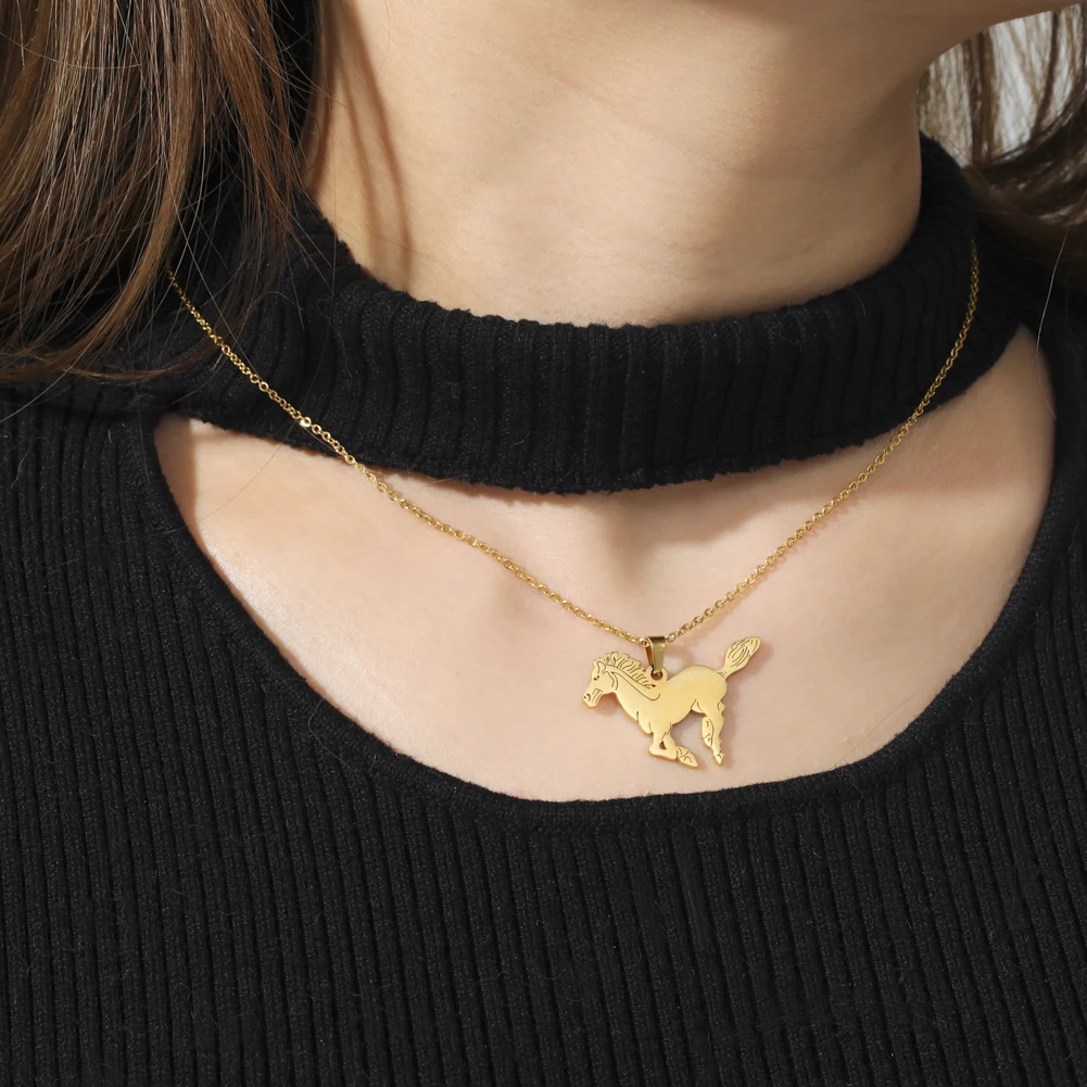 Ожерелье с подвеской в виде лошади золотого цвета для женщин, цепочка из нержавеющей стали, ожерелье для девочек, животное без выцветания, ю...