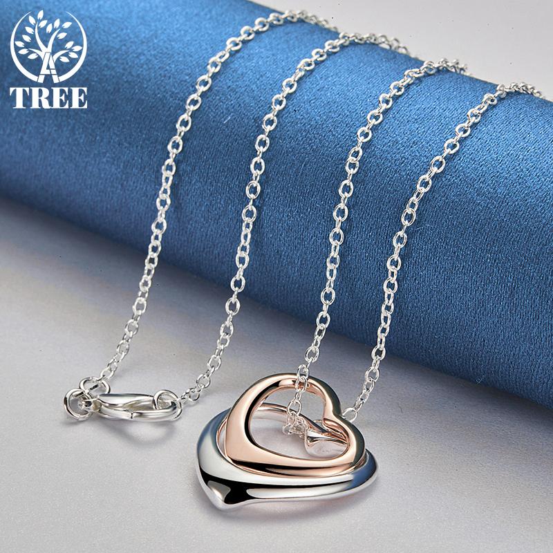 Ожерелье с подвеской в виде сердца из стерлингового серебра 925 пробы и розового золота, очаровательные ювелирные изделия O-40cm