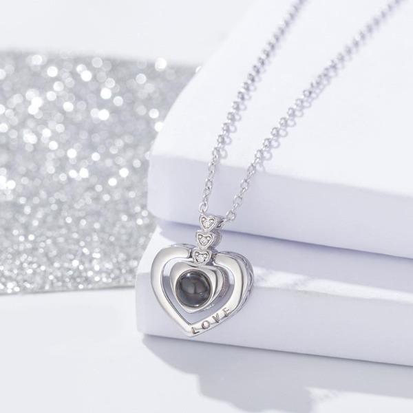 Ожерелье с проекцией памяти «Я люблю тебя» на 100 языках, двойное персиковое сердце, цепочка-воротник в форме сердца