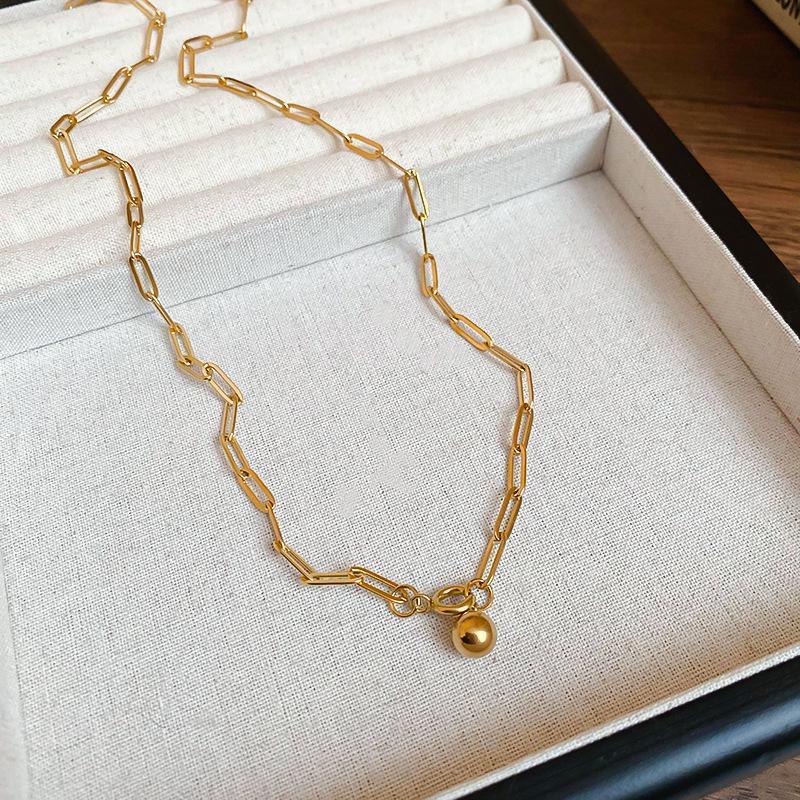 Ожерелье с шариками из титановой стали — элегантный, нишевый, холодный стиль для женщин Titanium Steel золотой