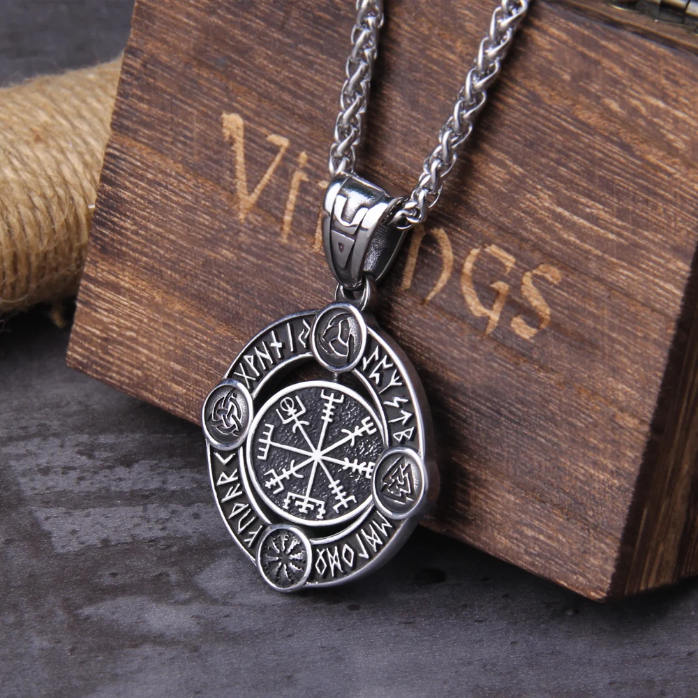 Ожерелье «шлем Awe» и «викингов вегвизир» Руна викингов, цепочка из нержавеющей стали и кулон в подарок мужчине с деревянной коробкой