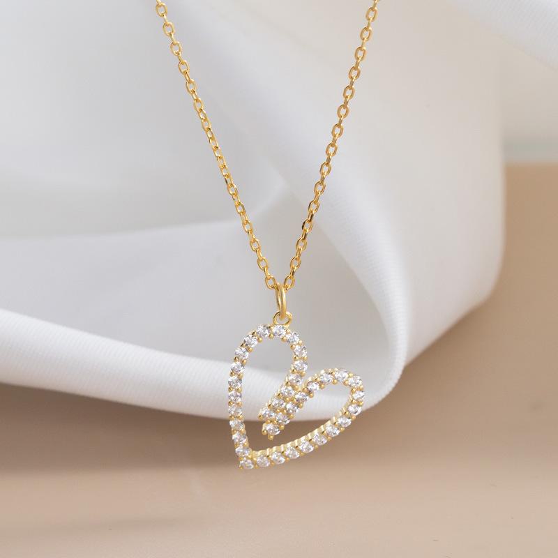 Ожерелье Banyan Tree S925 Silver Heart с бриллиантами на День святого Валентина - Элегантная женская цепочка на ключицу в подарок NS710 золотой