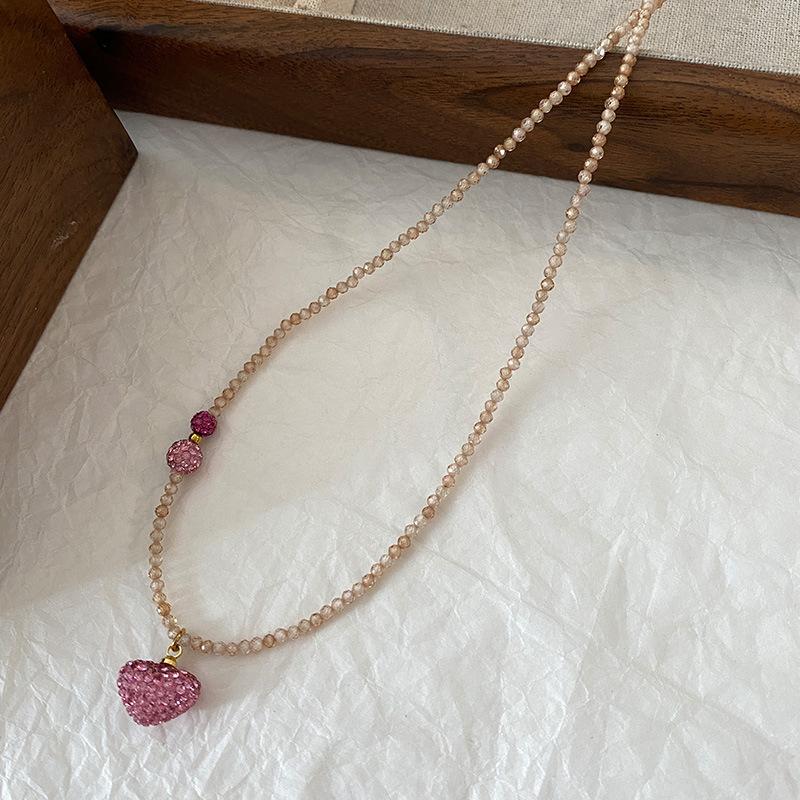 Ожерелье Love с розовым кристаллом, женская легкая роскошная и милая нишевая цепочка на ключицу, аксессуары, французская универсальная многослойная высококачественная цепочка на шею