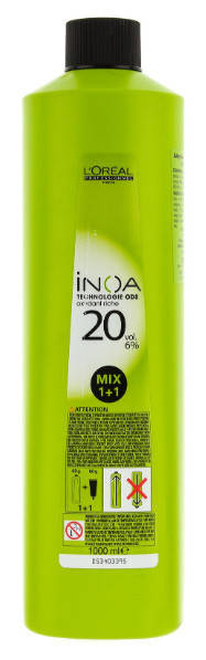 Специализированный крем-проявитель 6%, без содержания аммиака, объем 1000 миллилитров. Осветляет на 1 тон, помогает хорошо закрашивать седину. Содержит «Linene G» - компонент, который улучшает поверхность волос. Используется в дуэте с гелем для окрашивания «INOA».