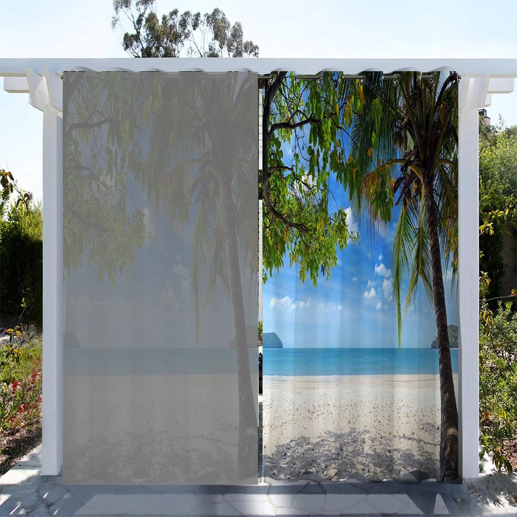 Окно Пейзаж Водонепроницаемый Уличный Шторный Светофильтр Полиэстер Садовая Штора Для Патио Крыльцо Беседка Декор Включает Крючок W140H210&Grommet Top