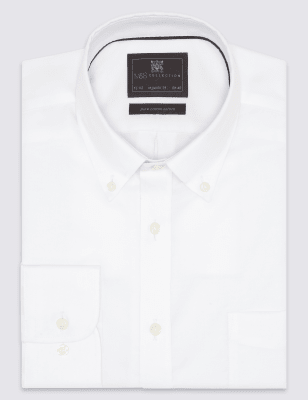 Оксфордская рубашка с длинным рукавом из чистого хлопка Easy to Iron, Белый