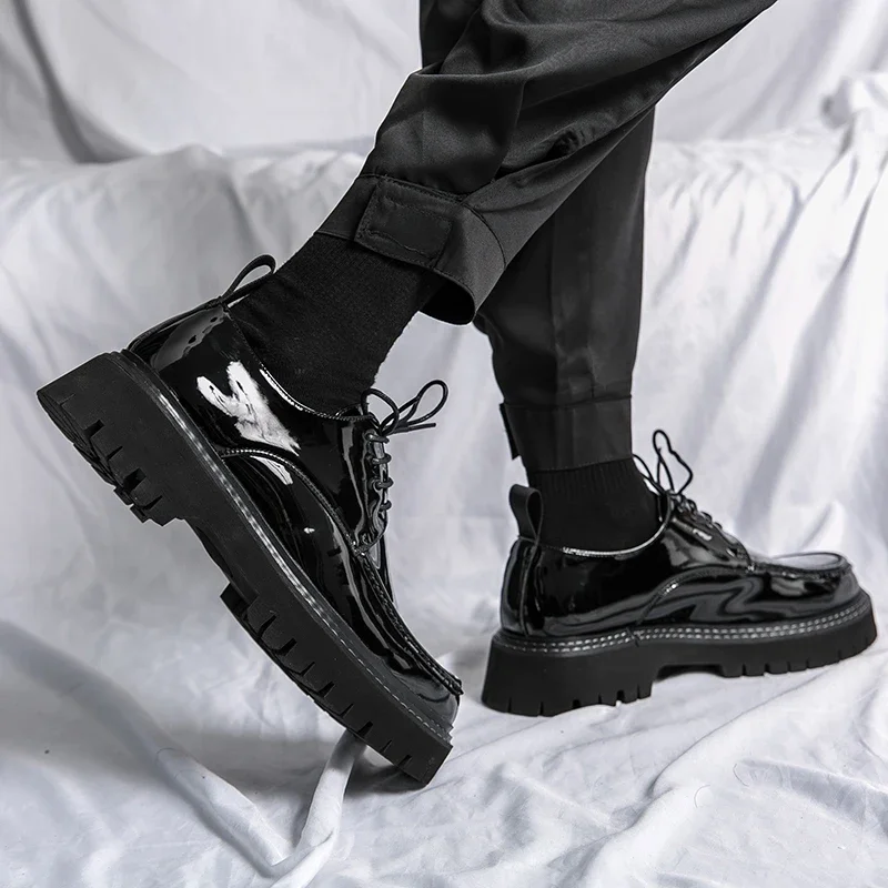 Оксфорды мужские из лакированной кожи, деловые туфли ручной работы, с круглым носком, на шнуровке, черные