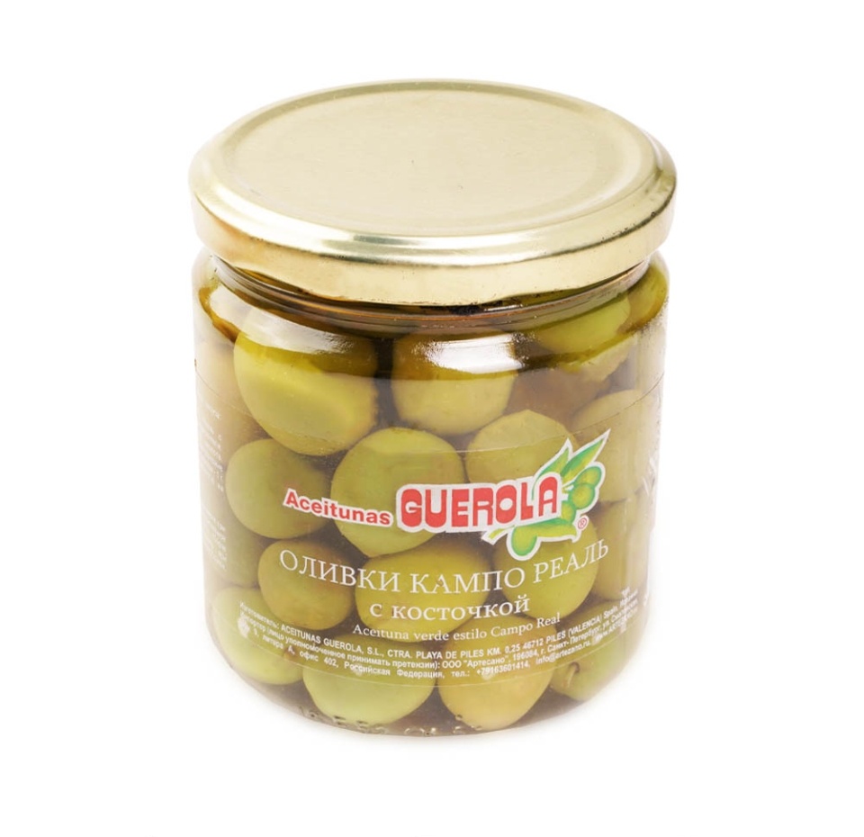 Оливки GUEROLA зеленые с косточкой Кампо-Реаль Aceitunas Guerola, S.L. 340 г ст/б Испания