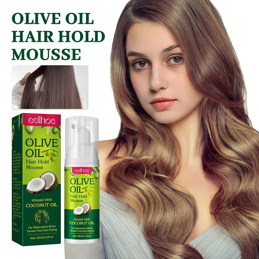 Оливковое масло для фиксации и блеска, обертывающий мусс для укладки волос, мусс для волос Hai'r, для оливкового искусства, ремонт с пеной, кудрявые, раздельные D7R9