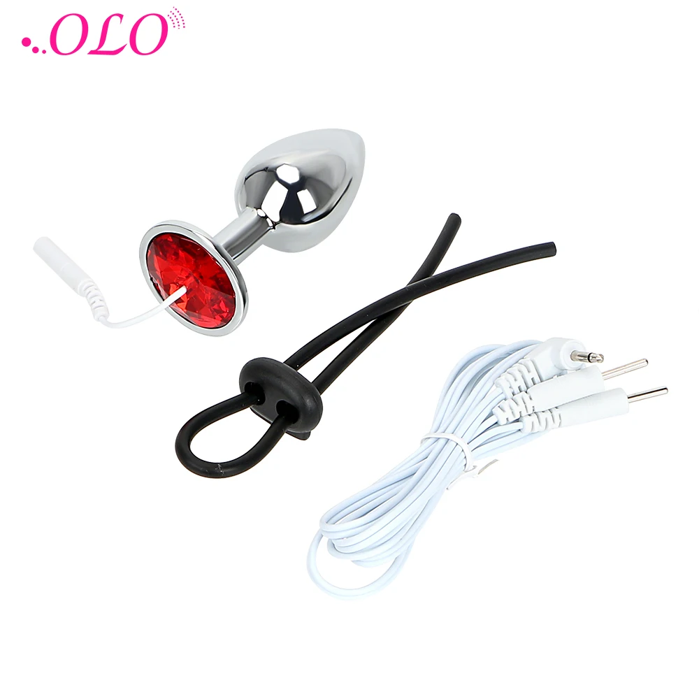 Оло Анальная пробка кольцо на член Электрический климакс медицинские тематические игрушки Электрический шок пенис комплект для стимуляци...
