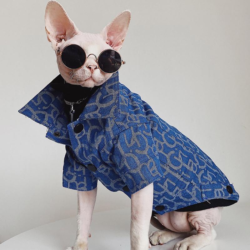 Cat Costumes Sphynx Clothes Autumn Winter Denim Jacket For Sphint Kitten Fashion Design Sphinx Sphinksu Coat Clothing