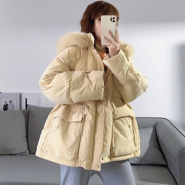new real 2021 skin winter thick warm with loose hood parkas 90% white down women's puffer jacket 4bxi, Black