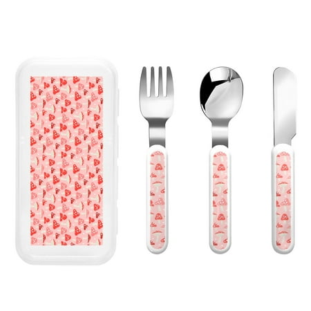 Easygdp Cute Mushroom1 3-Piece Flatware Set Kids Silverware Stainless Steel Toddler Kids Utensils Safe for Preschooler Children