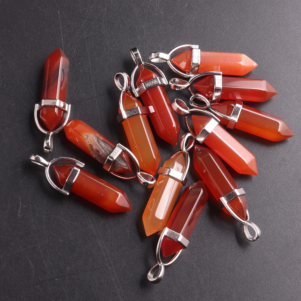 Оптовая продажа, подвески-подвески из шестигранного красного агата, лечебного хрустального камня, Подвески для изготовления сережек, ожере...