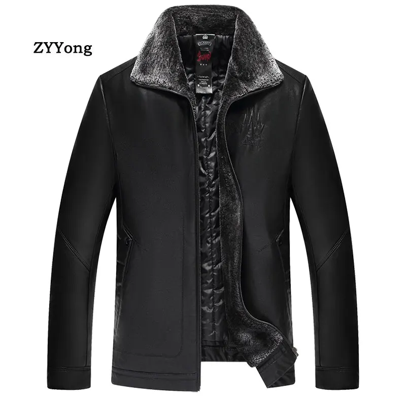 Зимняя черная флисовая кожаная куртка, Мужская парка, пальто с бархатным теплым меховым воротником из искусственной кожи, деловая Повседневная Коричневая верхняя одежда, Размер 7XL