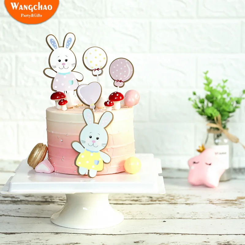 Double Layers Cute Bunny Balloon Party Cake Topper Kawaii Rabbit Child Happy Birthday Cake Decoration Party Supplies
