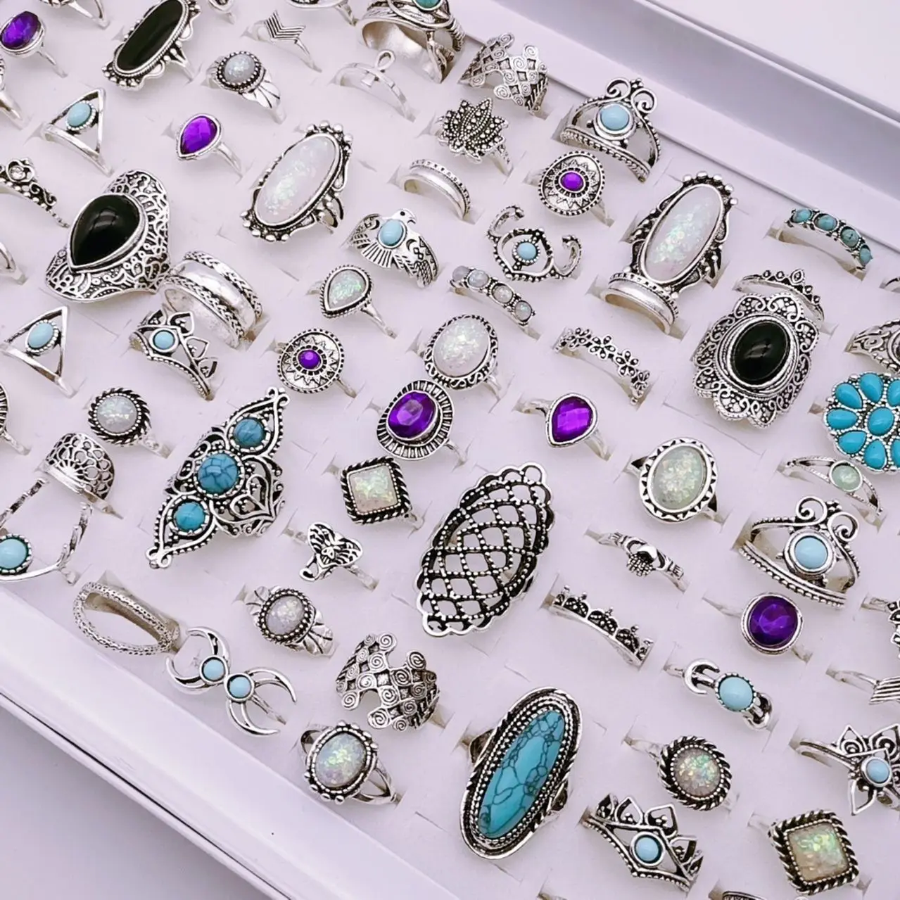 Оптом 100 шт./партия Кольца для мужчин и женщин винтажные богемные парные красочные драгоценные камни ювелирные кольца Любовь Свадебные фотообои подарки новая смесь