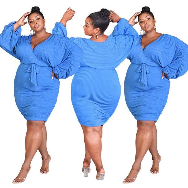 casual dresses 2021 autumn women ottoman knee-length dress plus size xl-4xl v-neck stacked sleeve high waist sashes shirring, Black;gray