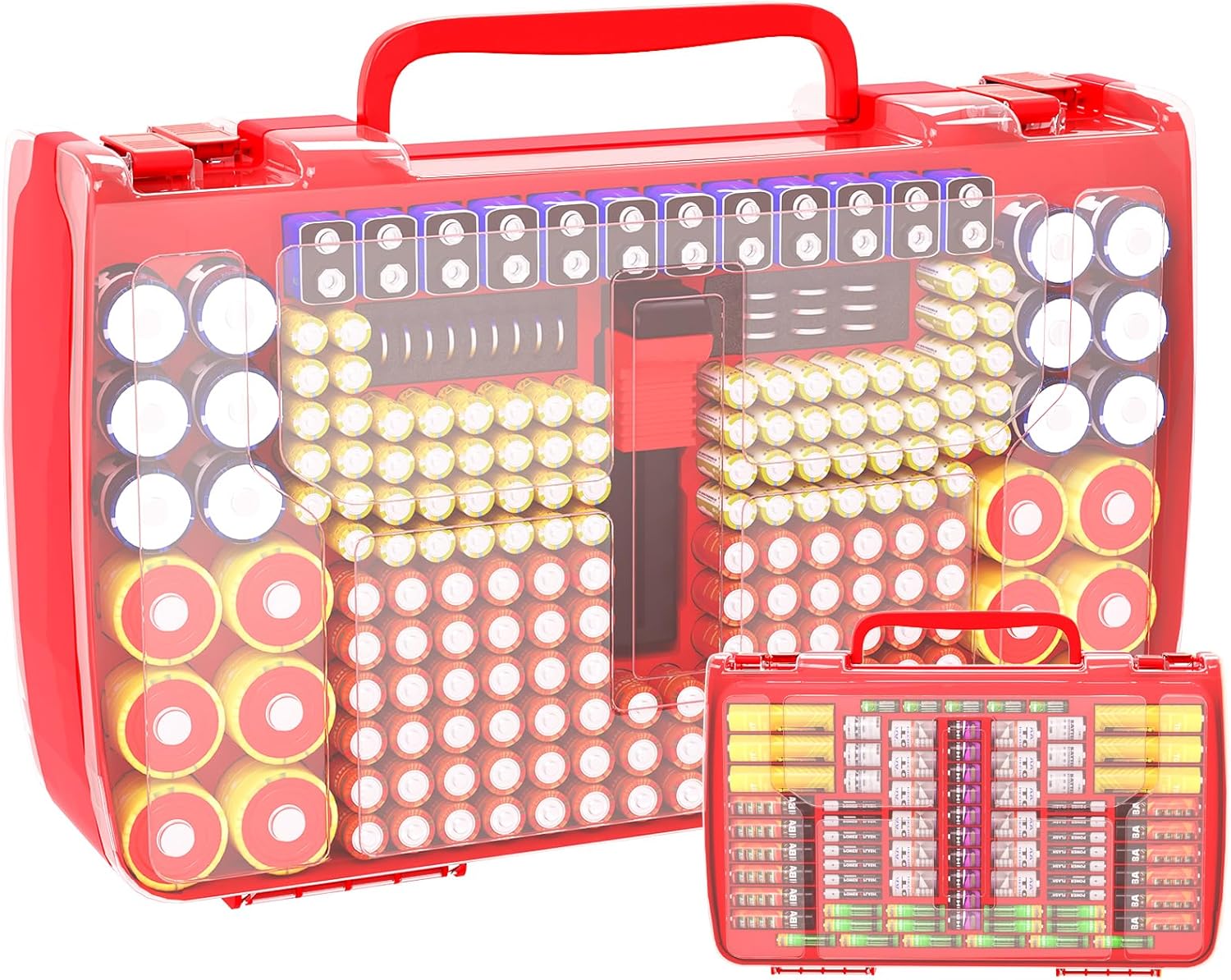 Органайзер для батареек, держатель для хранения, чехол с тестером - 269 батареек, двухсторонняя разнообразная упаковка, вмещает элементы AA, AAA, 4A, CD, 9 В, 3 В красный
