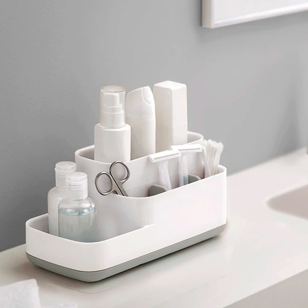 В этом органайзере для ванной есть несколько отделений, так что вы можете держать свои предметы первой необходимости в порядке и легко найти, когда они вам понадобятся. Эргономичный дизайн, и нескользящая основа.