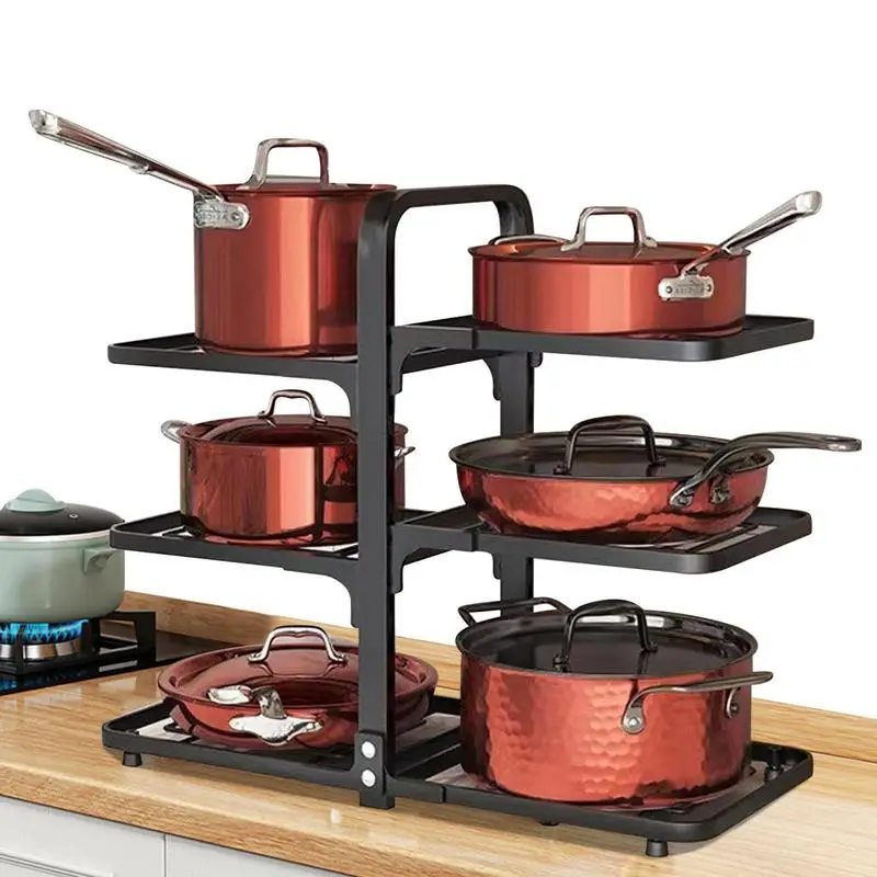 Органайзер для кастрюль и сковородок, стойка для шкафа, Многоуровневая стойка для хранения специй, регулируемая кухонная полка, аксессуары