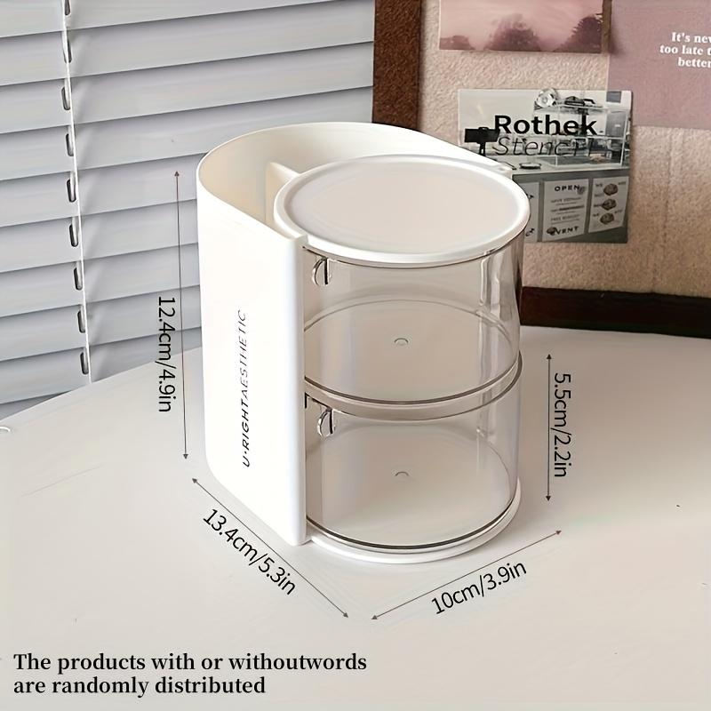 Органайзер для макияжа с подставкой для кистей, Пыленепроницаемая белая/розовая коробка для хранения пуховок, Компактный настольный контейнер-держатель для кушонов с чехлом для кистей 2 Layer белый