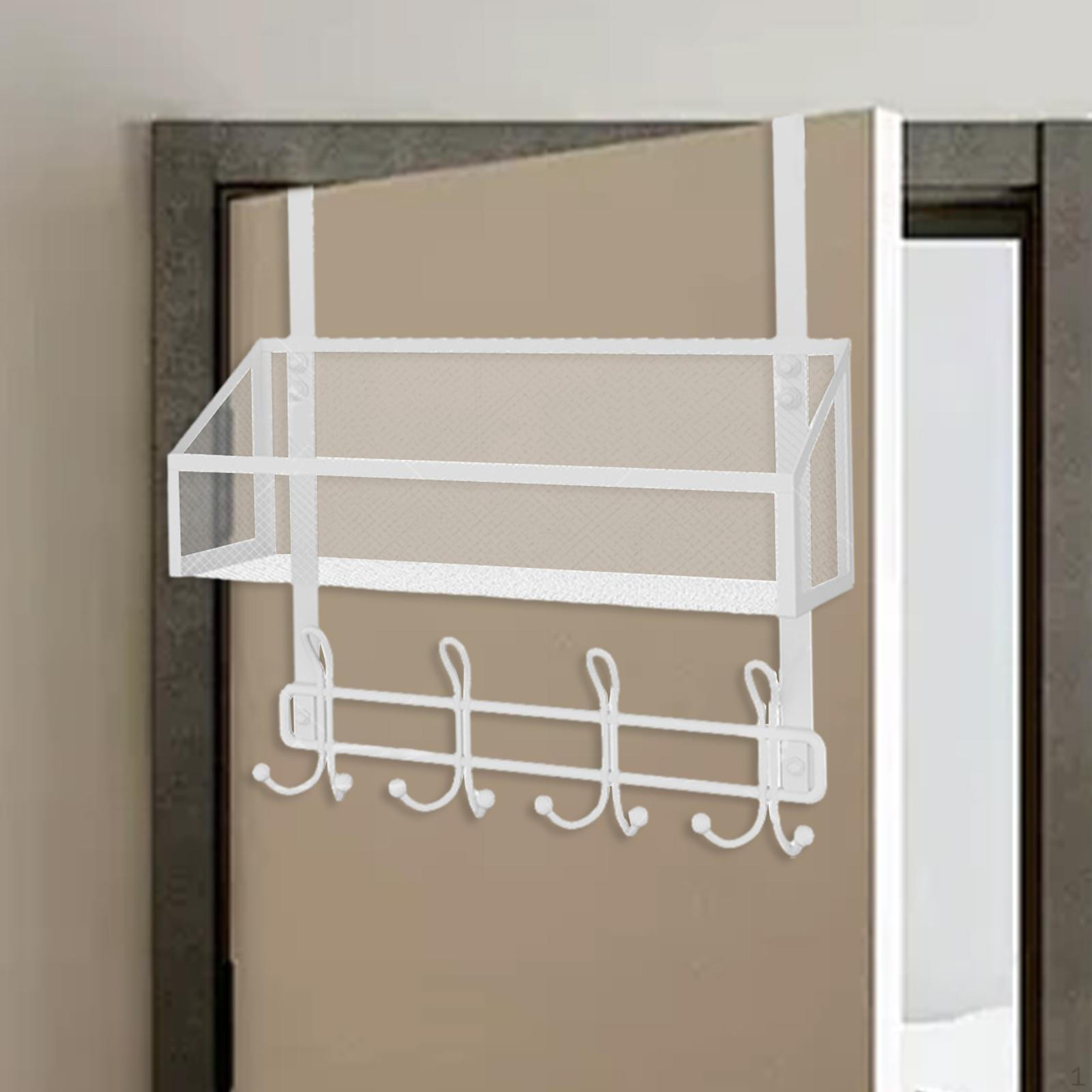 Органайзер для хранения на задней стороне двери и 4 крючка, для небольших квартир White Single Tier
