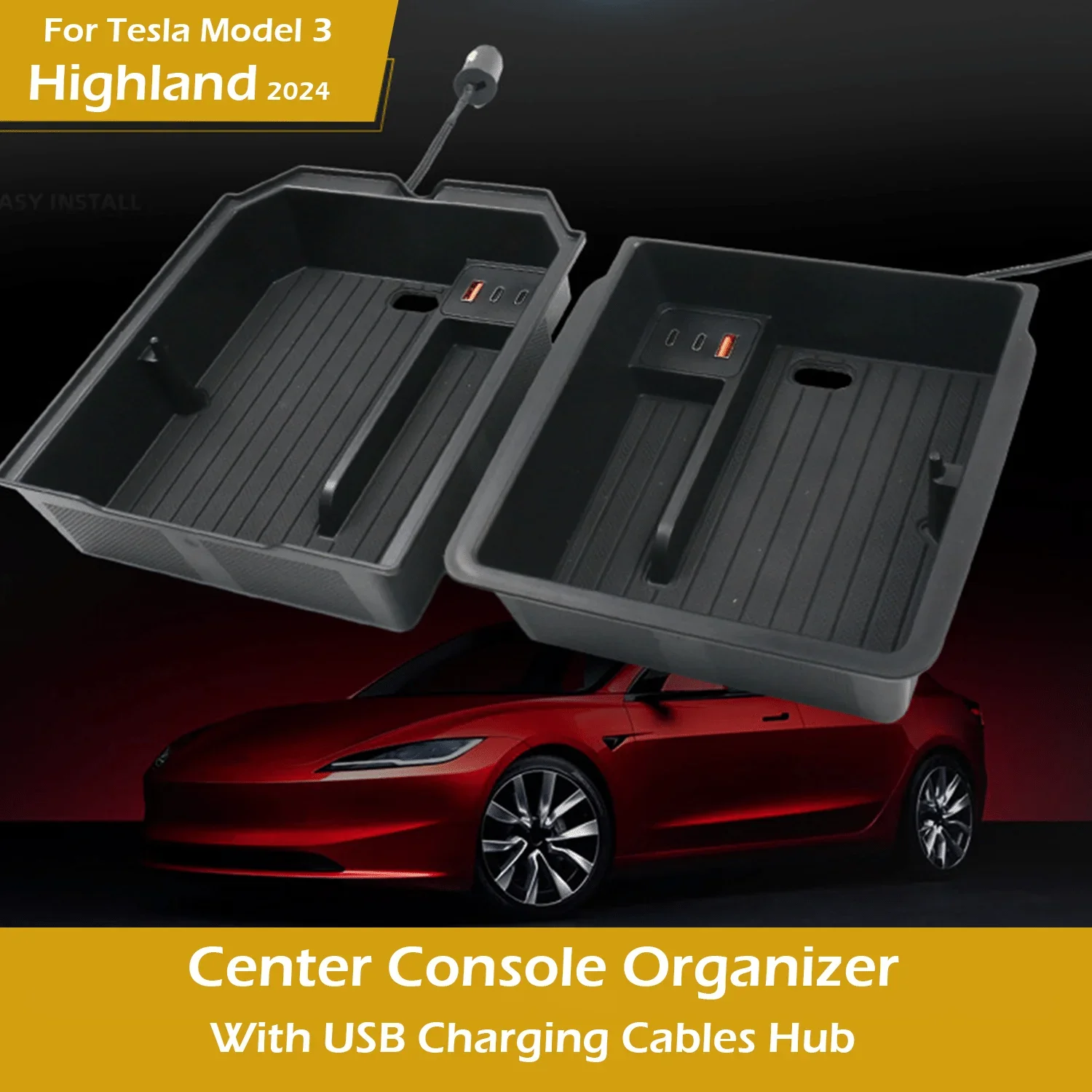 Органайзер для центральной консоли Tesla Model 3 + Highland 2024 с USB-зарядкой