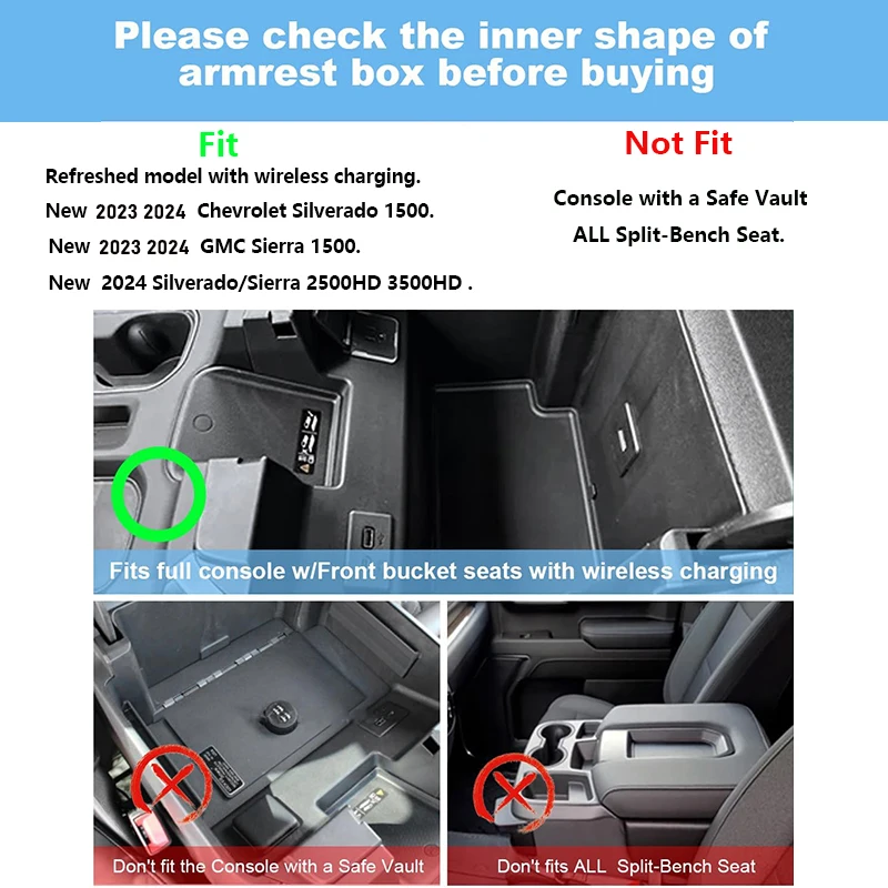 Органайзер центральной консоли, совместимый с 2023 2024GMC Sierra/Chevy Silverado 1500,2024 Sierra/Silverado 2500HD 3500HD, аксессуары