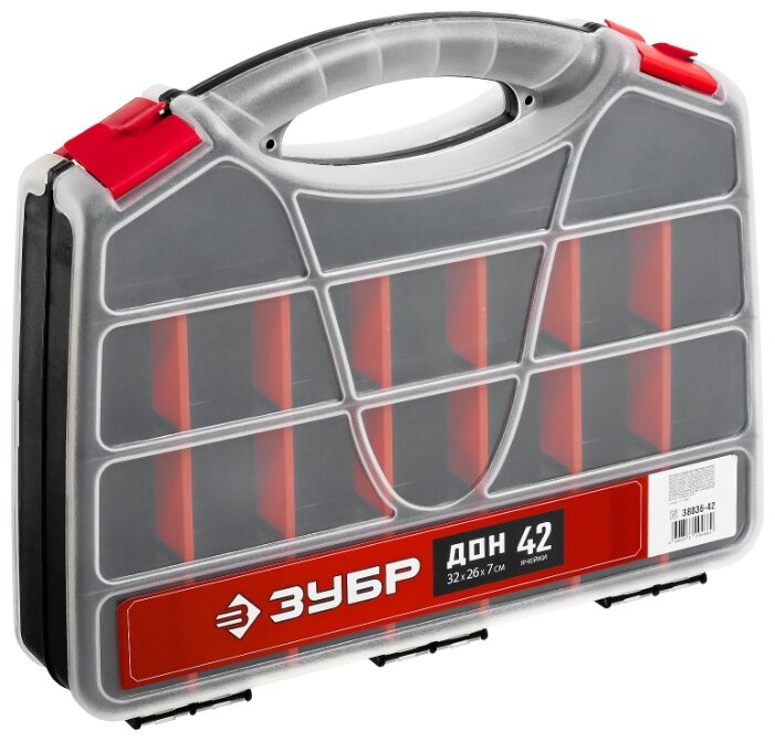 Органайзер 32смx26смx7см, отсеков 42шт., пластик, ручка, ЗУБР Мастер Дон-42 (38036-42), Черный, Дон-42