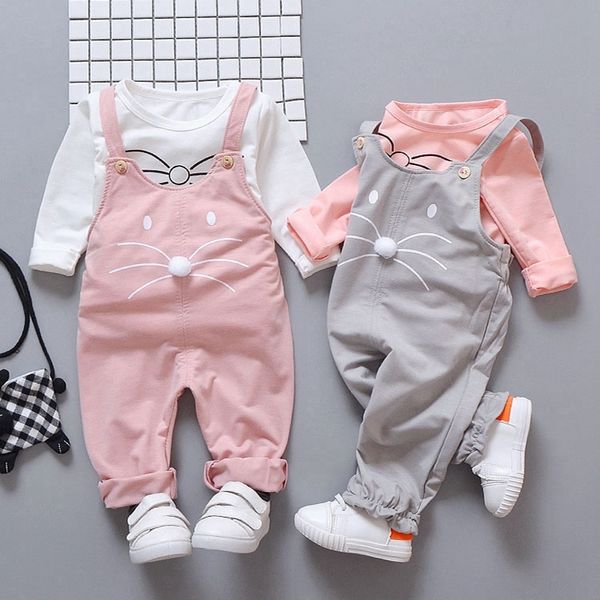 2pcs/lot baby spring newborn girls sets fashion suit t-shirt + pants sets of clothing kids girls suit outside, White